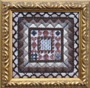 When I showed off my finished piece at our end-of-year dinner and my fellow Chapter members asked “Who’s design is that!?!”, I was thrilled. Then, I was flattered when they actually wanted to stitch it as a project. From my scribbled notes, I wrote my first stitch guide using just Adobe Acrobat. And, to make sure I was writing everything down, I stitched a second one in another color family. Then, when we stitched it in the fall, I did another in a third color. So, I distinguish each “Points of Tranquility” by adding “in the Sky” for the blue piece, “on the Earth” for the brown piece, and “in the Sea” for the aqua green piece.