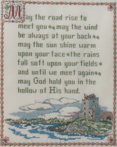 The Irish have a wonderful saying that my mother (whose birthday is today – yes, on Halloween) stitched for my husband for his birthday one year. Both his mother & father are Irish. It is a stamped cross stitch piece. Oddly enough, his mother picked that to be on the back her memorial card when she died. So, now, it make us think about both our mom’s! Happy Birthday Mom!!