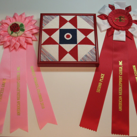 Beautiful Ohio was entered in the 2010 ANG Seminar, my first time submitting any needlepoint to be judged. I was thrilled it took a Second Place ribbon in the Adaptation non-professional category & shocked when it won the Princess Grace Award.