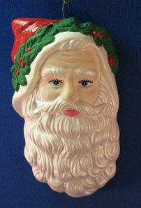 These are some hand-crafted ornaments. The first 3 are from my days in ceramics. I just love them. As I recall, I was the slowest painter. Everyone cranked out pieces like nothing & there I was plodding along. But, I was very meticulous! The last 3 are from unknown persons that I must have picked up in craft shows. Of those, the first 2 are on plastic canvas (quite large count by the looks of it). They are also wonderful. I love the mouse at the foot of the clock. The last is tatting or crocheting (not sure of the difference as I do not do either of those techniques).