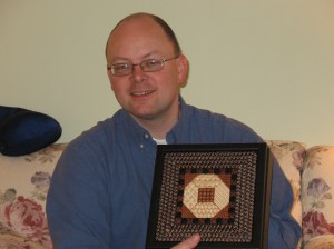 This was a Christmas present to my brother, John in 2007. It is Judy Dubrow’s Octagon Square Creation & was a project in Sept 2006 for our Mainline Stitchers ANG Chapter. I added the outer wide border to fill in the opening of the box. It looked manly enough for my brother & functional. It can hold whatever he wanted!