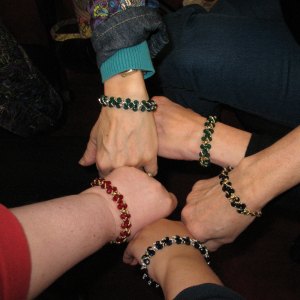 Lori, our current President from Main Line Stitchers, taught a jewelry beading class to a few of us today. Great class. Lots of fun. It was wonderful to start & finish a project in ONE sitting – that never happens with needlepoint!
