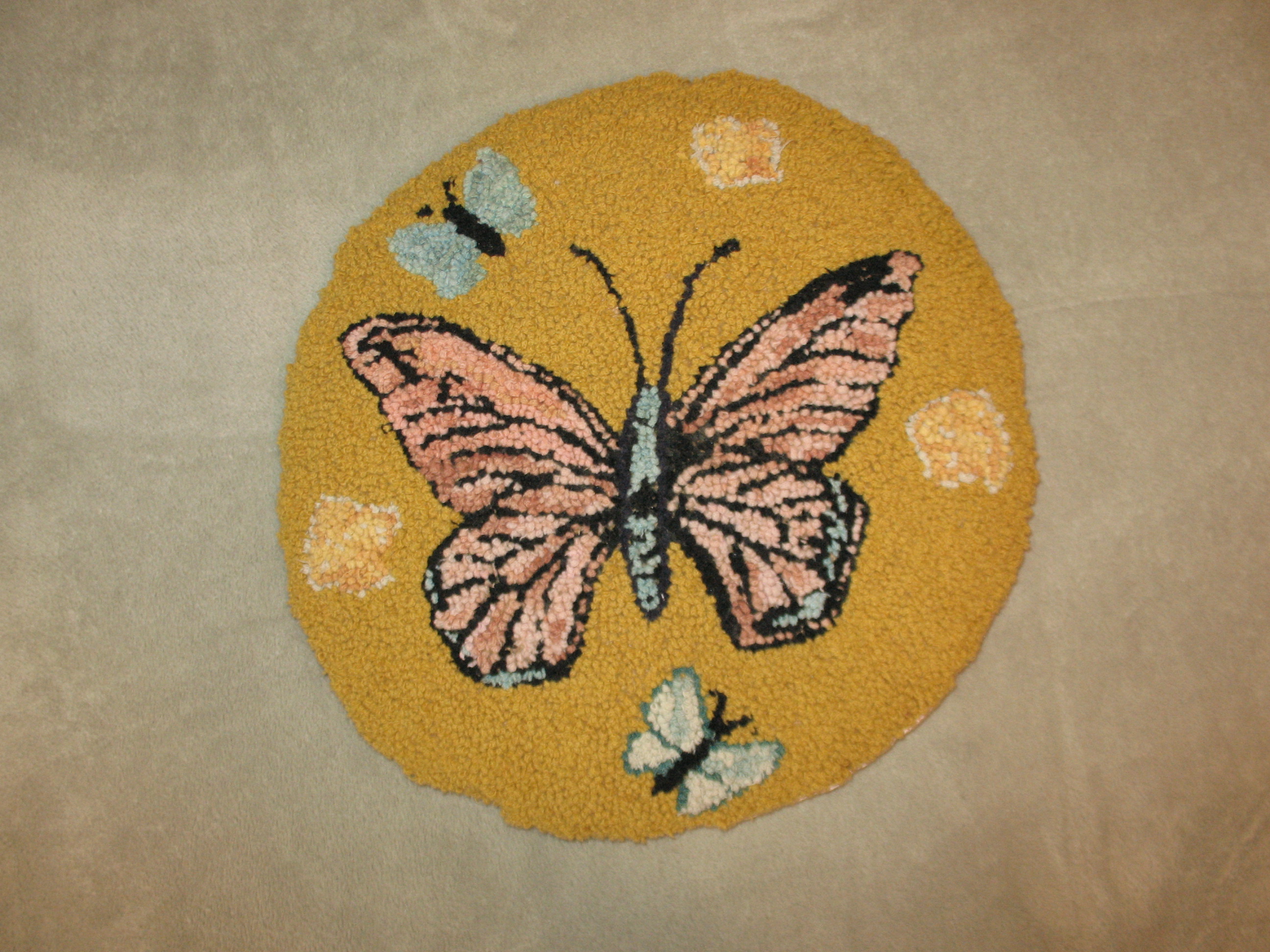 For now anyway, this butterfly has landed in our rose garden (pillow on our bed). I am mixing cross-stitch & hooking but, thematically it works for me. And, the colors go together good enough.