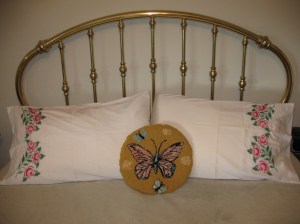 These are stamped cross-stitched pillow cases that I did long enough ago that they are probably vintage too!!