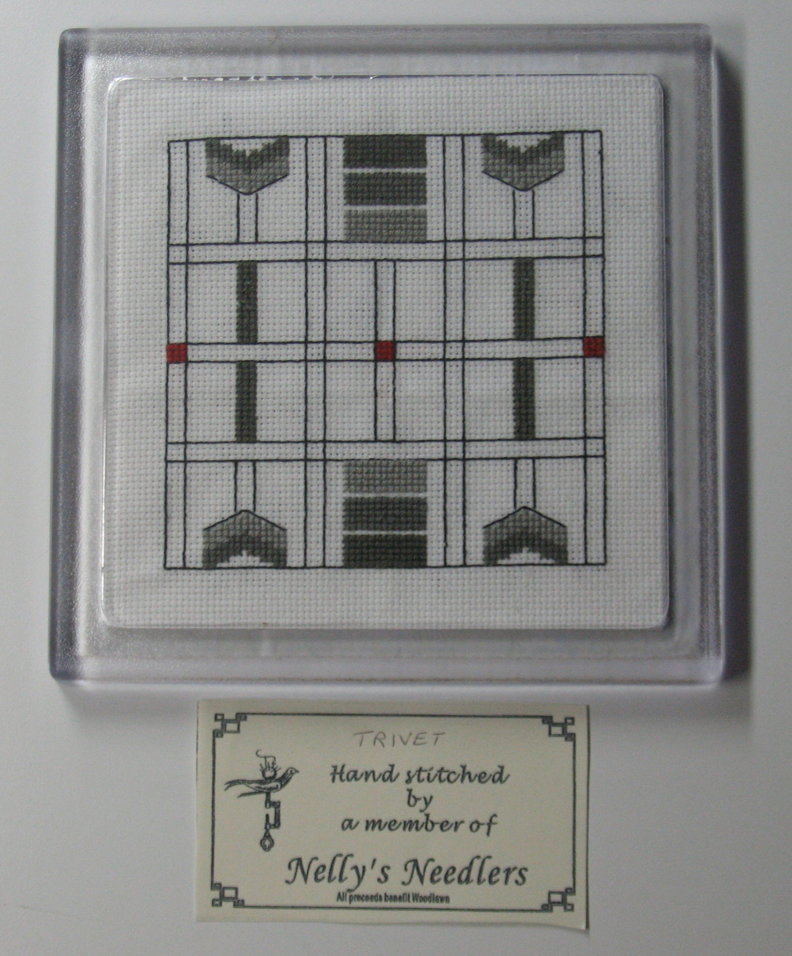 This year we didn’t have such a big breakfast that we were able to sit & eat the lemon tart before heading home. We also got some of Martha Washington’s ginger cookies made by Nellie’s Needlers. I also picked up a bookmark for Bill. For the house and to go with the Frank Lloyd Wright table runner, I got a trivet stitched by Nellie’s Needlers.