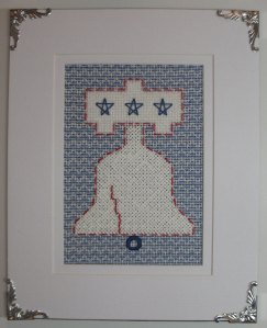 I added a Liberty Bell charm (I am pretty sure I heard that these will be handed out to registrants – so, you are getting a sneak peek)! I had no idea there were words on it until I took this picture & blew it up. Thanks to Google & wiki, I found what is inscribed: “PROCLAIM LIBERTY THROUGHOUT ALL THE LAND UNTO ALL THE INHABITANTS THEREOF LEV. XXV X. BY ORDER OF THE ASSEMBLY OF THE PROVINCE OF PENSYLVANIA FOR THE STATE HOUSE IN PHILADA PASS AND STOW PHILADA MDCCLIII”