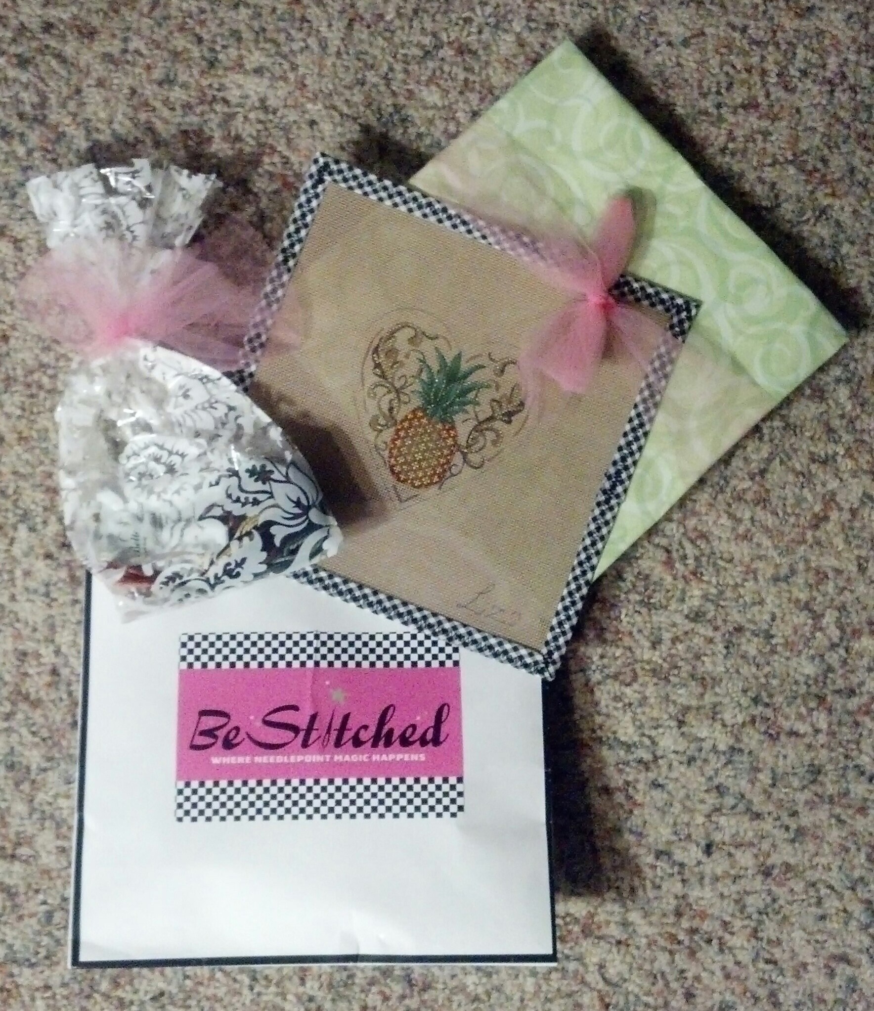 While in Arizona, I visited 3 needlepoint stores! At BeStitched Needlepoint, I picked up a pretty pineapple design & Belle Soie, a silk floss, that I have not tried before. The design is a Liz Goodrick from Susan Roberts Needlepoint Designs.