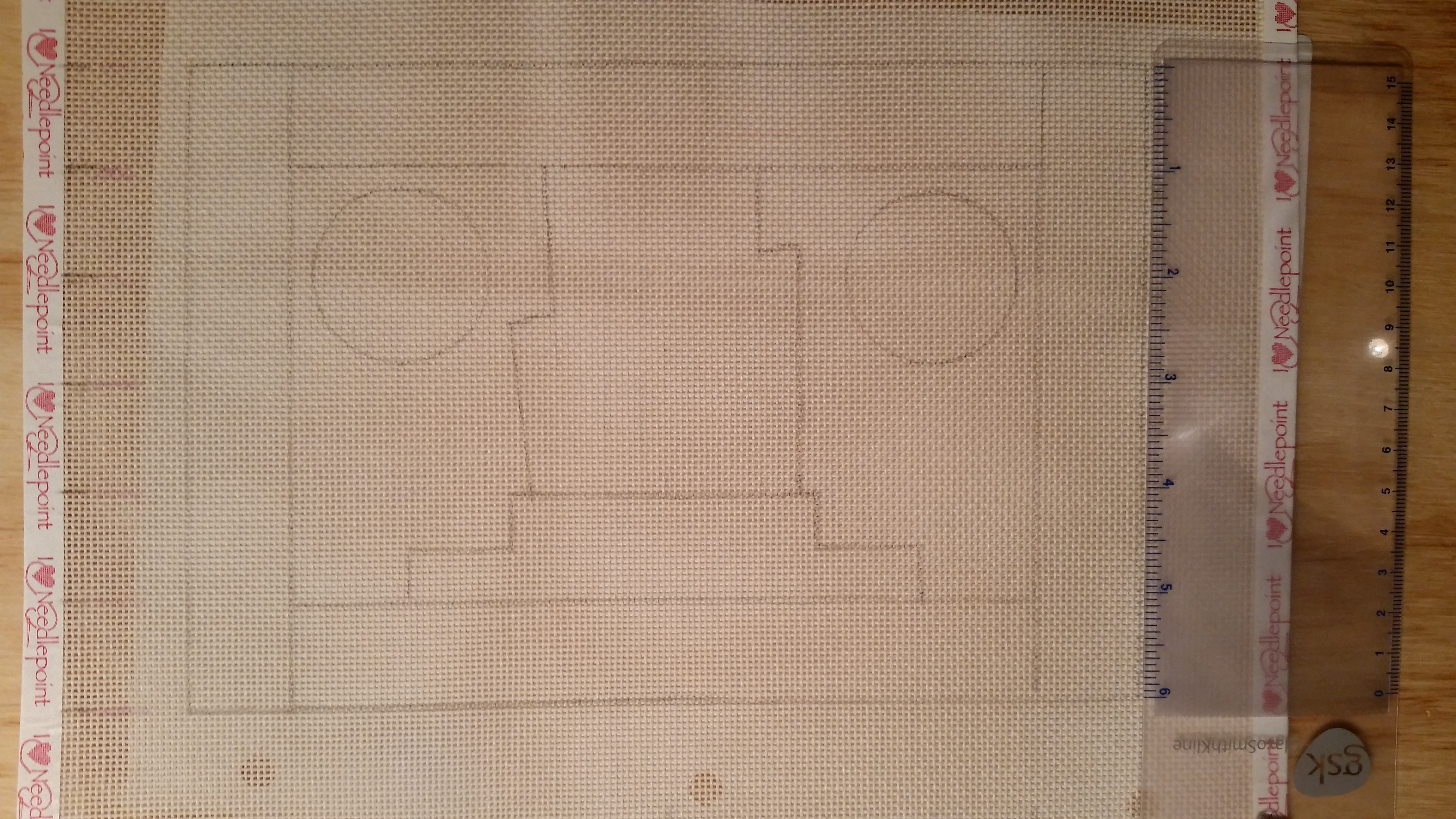 The only finishing item in my stash at least 6″ is the tea tray. So, that’s how I determined the size & here’s my line drawn canvas.