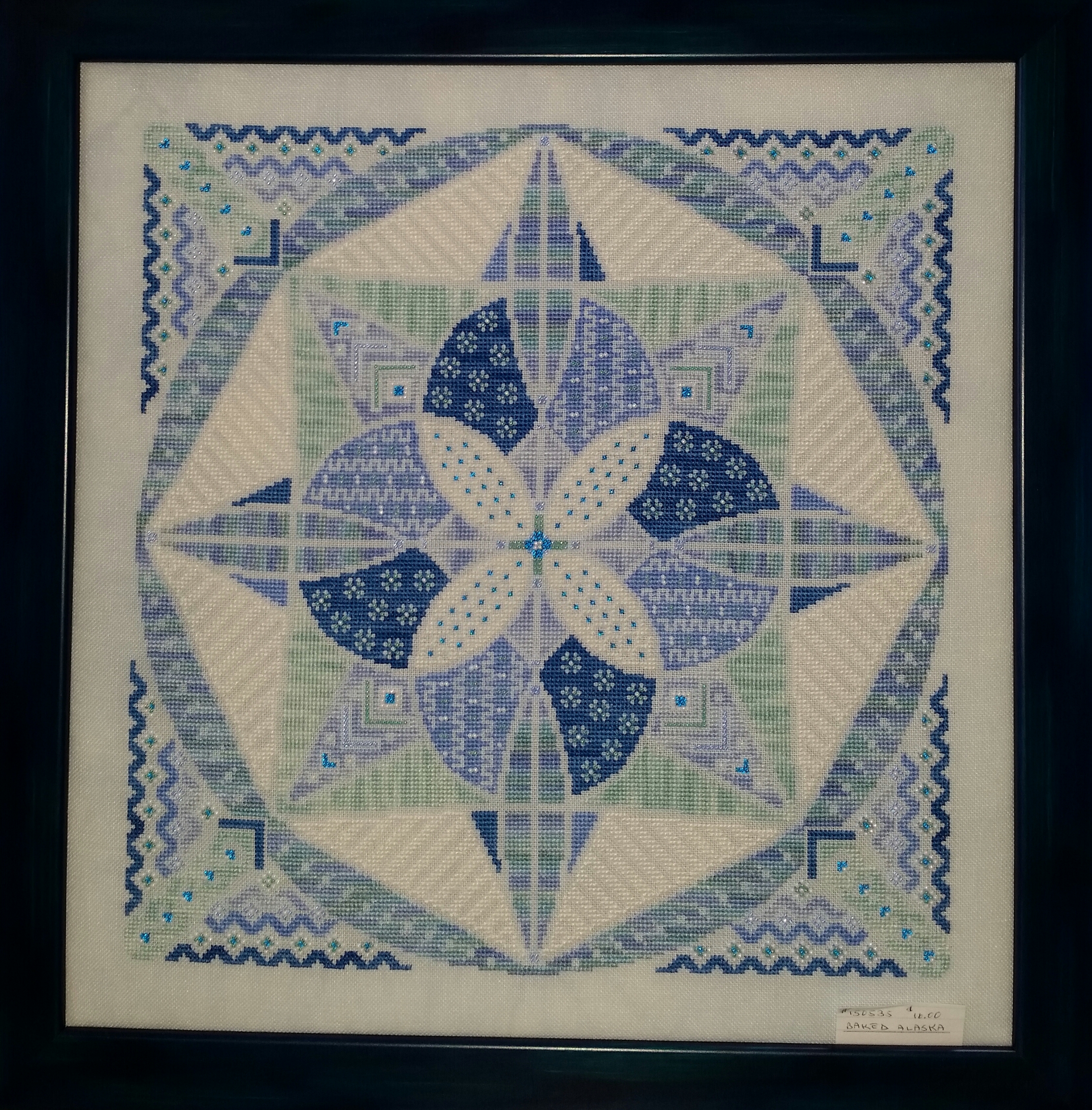 I just loved the colors of this cross stitch piece, Baked Alaska, by Cheryl Granda. It is from a Mandala series of A-Maze-ing Desserts Collection. I am afraid to look for the others in the series!
