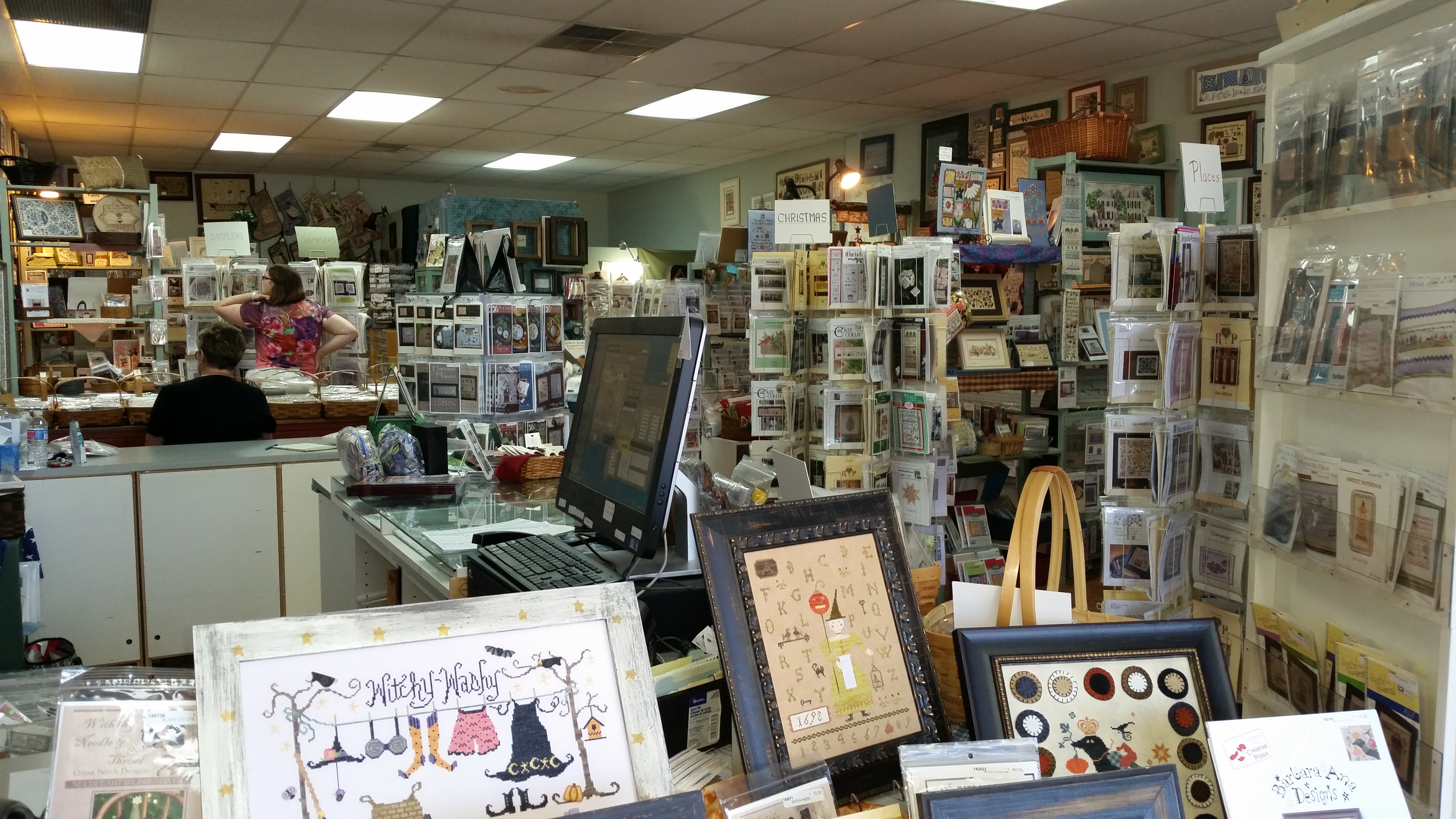 They carry mostly samplers and cross stitch projects. Very nicely arranged, bright, and a huge stock. They carry DMC floss, Sampler Threads, and Weeks Dye Works Floss.