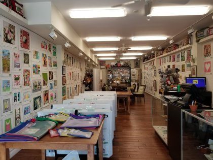 Needle Nook of La Jolla lived up to their reputation! Two stores, one with canvases and one with threads, both amazing. You can’t tell from the pictures but the thread walls slide revealing more threads. They are near a lovely Ocean and have an ocean of lovely threads! You really can’t appreciate how many canvases they have either on the flip boards. Good to see Vicky was there to actually meet her and displaying her award-winning piece. I had seen Nancy working in the exhibit area. All the members of the local ANG chapter did a fantastic job.