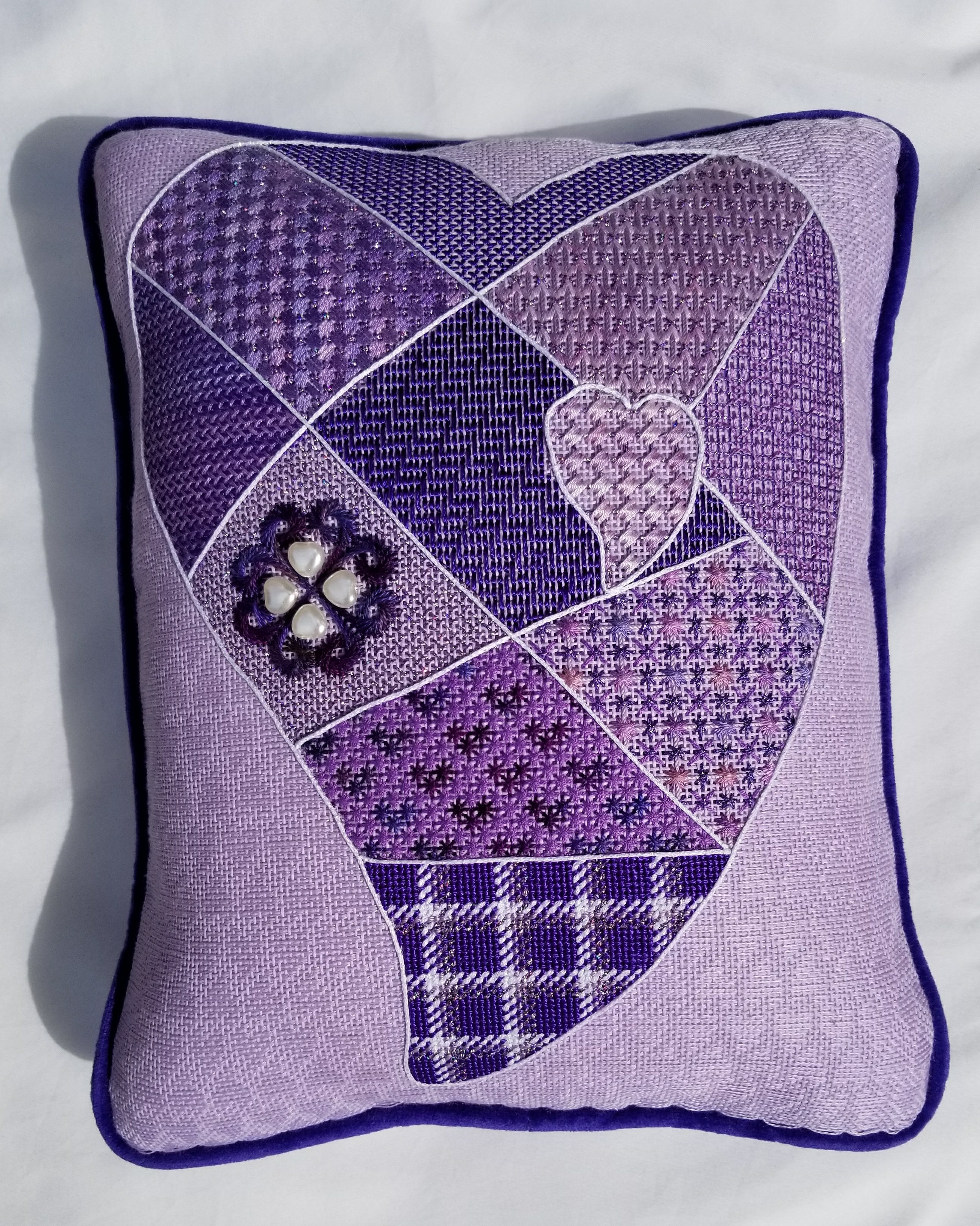 Another finish within a calendar year! This was started in September of last year as a year-long project for my ANG Main Line Chapter. It’s the ANG Stitch of the Month from 2012, the 40th Anniversary Heart. Stitching was done in 9 months. And, thanks to Nimble Needle of NJ for another great pillow which will look cute on my guest bed next to a white puppy.
