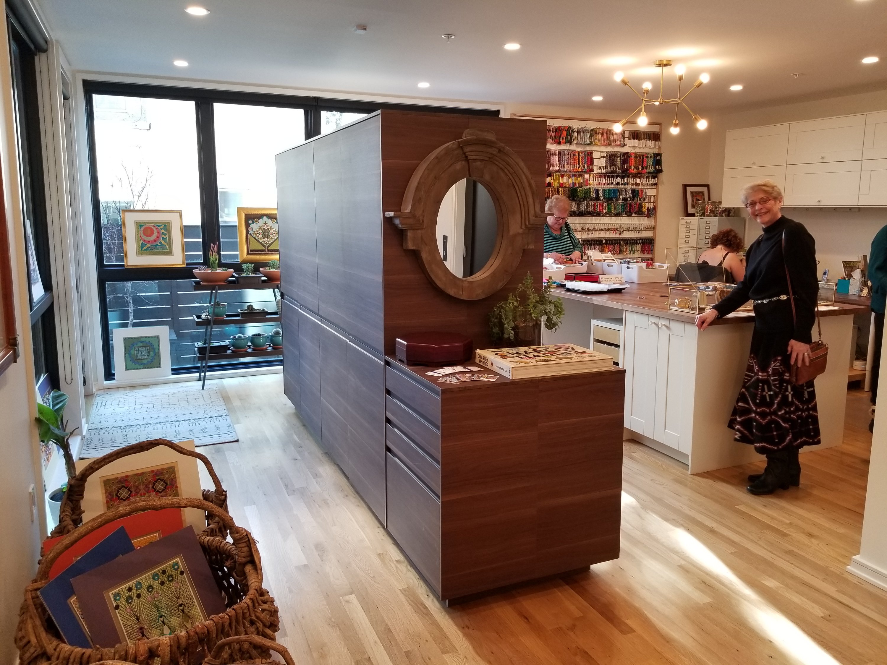 Rittenhouse Needlepoint at their new location at 12th & Arch to select threads for Lotus Kimono and the new Crescent Journey colorways. Linda & I spent 4 hours there – fun but not as easy as I anticipated!