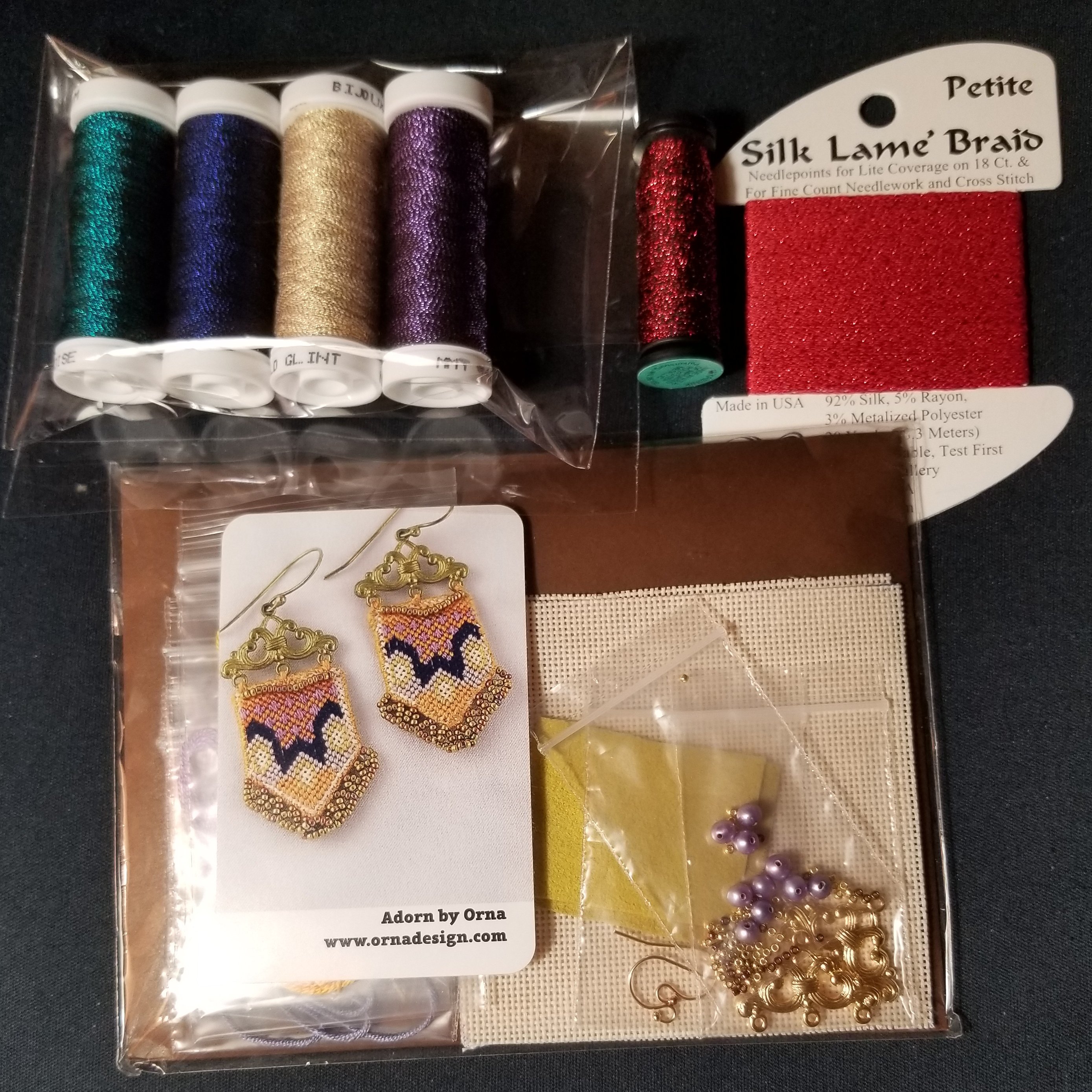 I found 4 pretty Bijoux threads and a couple of sparkly red threads for my Patchwork of Peace. Orna’s packages are all so pretty but I only picked up the kit for a pair of earrings.