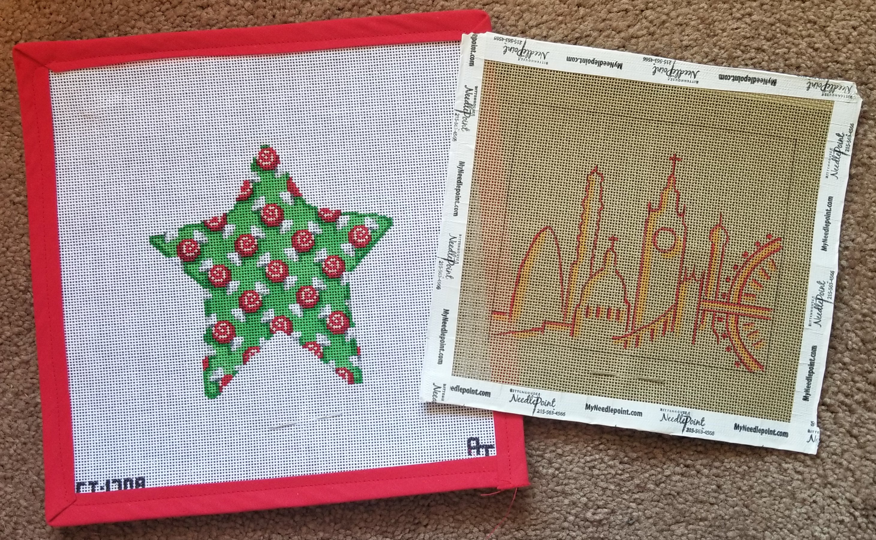 In addition to some non-needlepoint gifts, I will enjoy these gifts from my husband and sister. How did they know?? Happy Holidays!