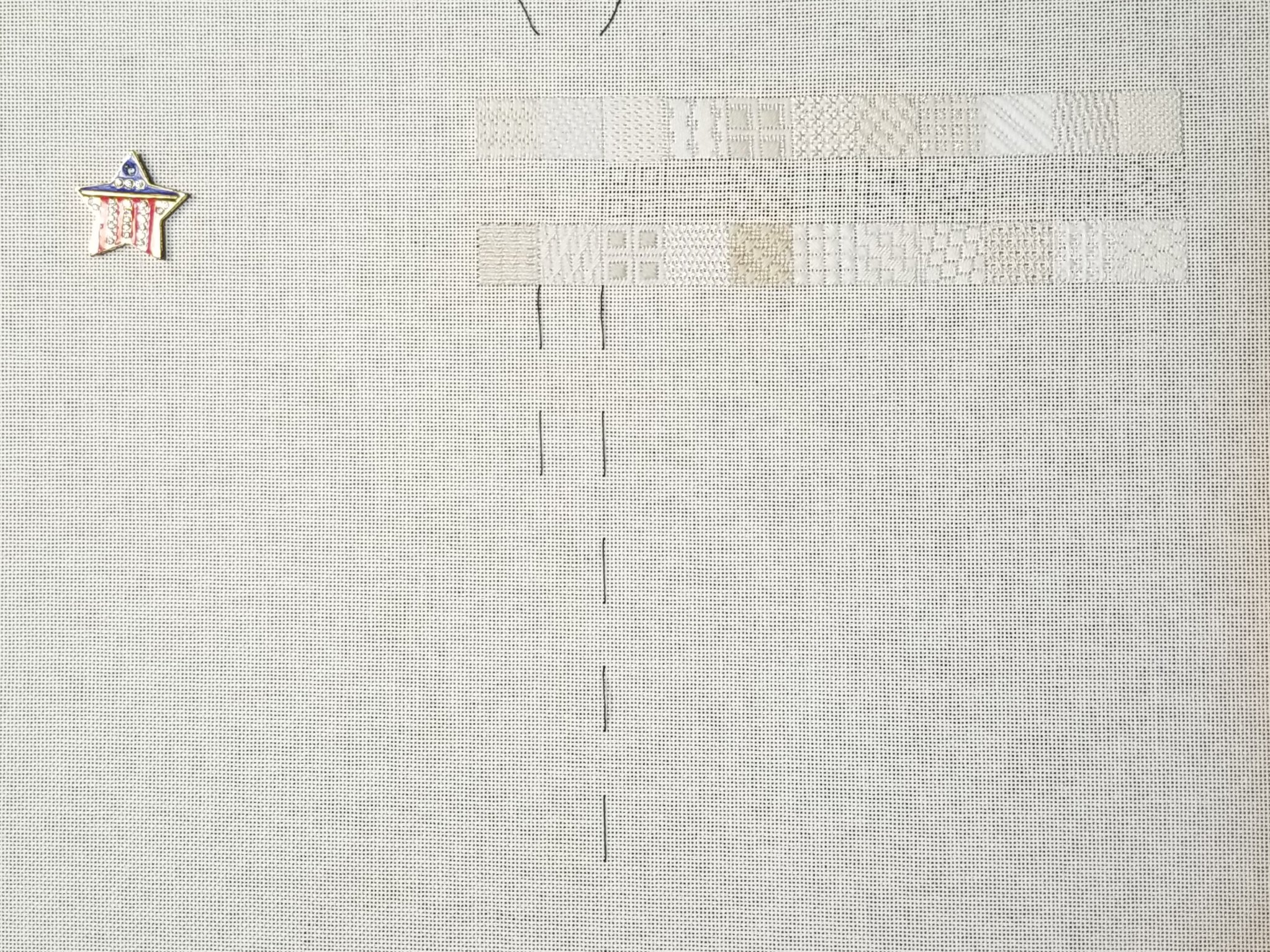Patchwork of Peace, a counted design of the United States flag by Mary Clark Donegan, consists of 247 different blocks of reds, whites/ecru, and blues. I am using supplements by Connie Camp but on Congress Cloth and am using my own threads.