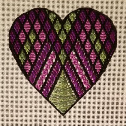Hi Sheryl, Thanks so much! The basic pattern is published in Needle Pointers, the American Needlepoint Guild’s magazine. I altered that and made it up as I went. I’m not sure what notes I kept on this specific heart. Are you a member of ANG?