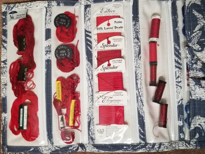It’s great to use reds and having no issues working with fewer thread options than I had with white. They fit in half of the Bohicket Bag.