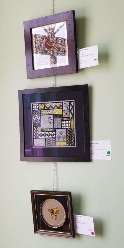 As usual, the pieces were wonderful. The ones that I have stitched or ones that I own and want to stitch is one category of needlepoint that I love to see there. It’s also been great fun to watch all the members from the ANG New Jersey Needle Artists chapter submit the same design in different colorways. I love seeing pieces submitted by people I know or designed by people I know. And, getting to see such beautiful cross stitch makes me want to pull out some of those pieces that I have in my stash. I’m always in awe of people who stitch on really small count, 32, 40, and gauze! So, I basically I really enjoyed seeing just about everything.
