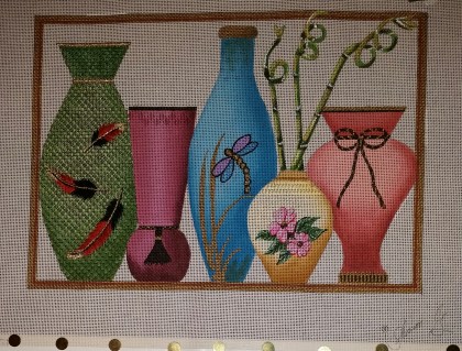 Filed under: ANG Main Line Stitchers Chapter, ANG Stitch of the Month, 1999, Crescent Journey, Melita's Designs, Vases with Curly Bamboo by Sharon G