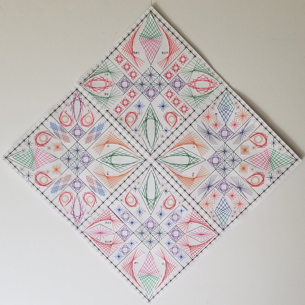 I made all the large and small points the same. I placed two designs in the six center motifs and did that the same in each diamond. Then, I decided to vary the rest of the large and small fills and rectangles from diamond to diamond.