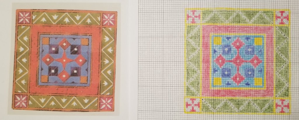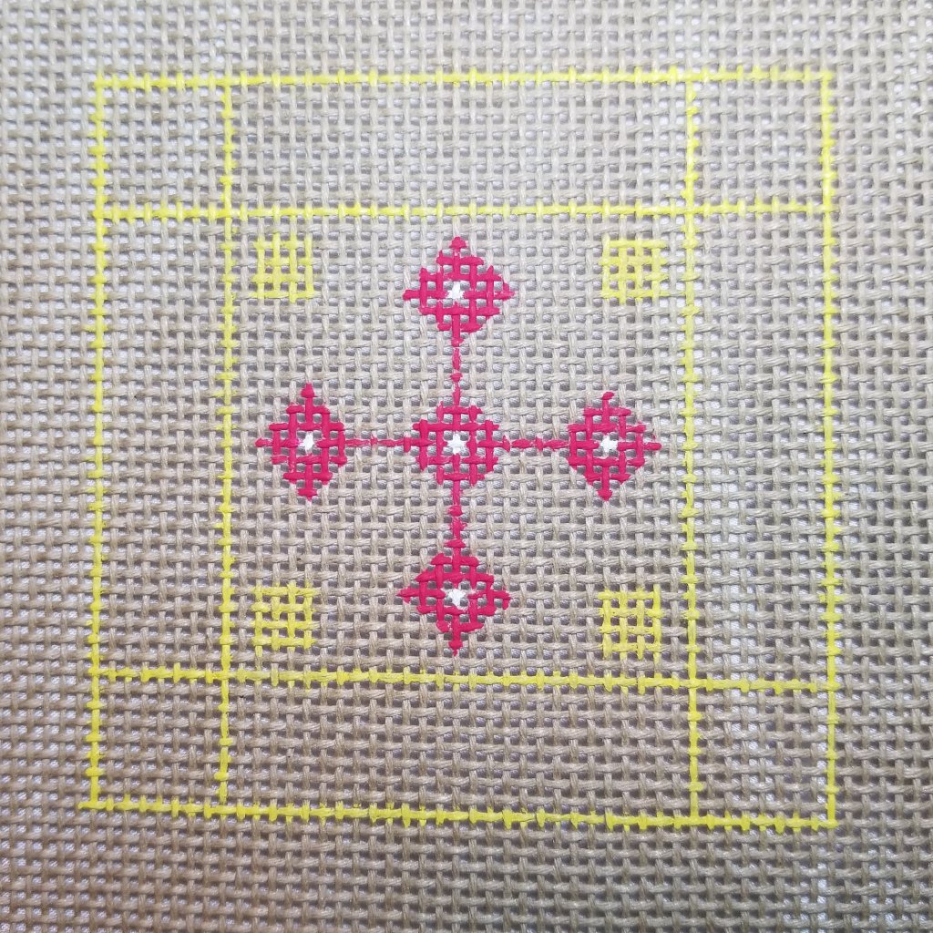 Because it is 13 count canvas, I will not be able to get all the detail. For example, I modified the 4 corners.