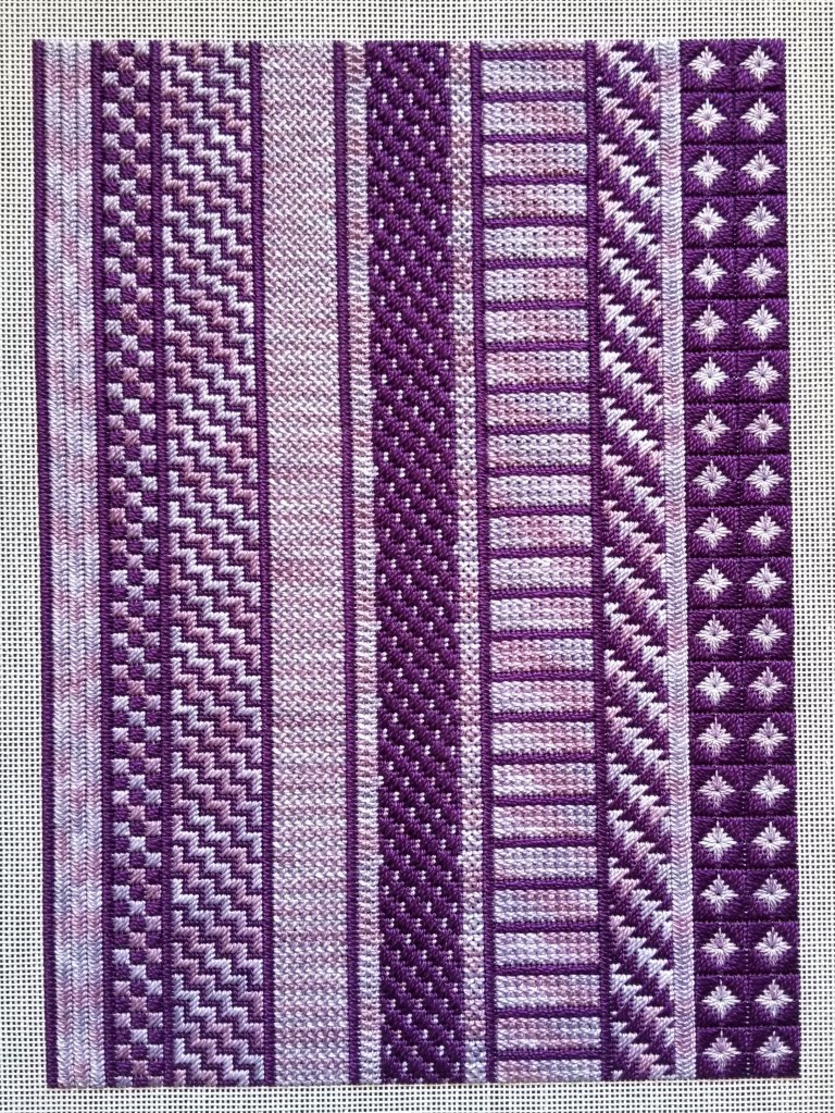This design is by Kam Wenzloff (Nov/Dec 2019 issue of Needlepoint Now) that our chapter is doing as a year-long project using Color Complements threads. I’m ready for our March 8th meeting on Zoom.