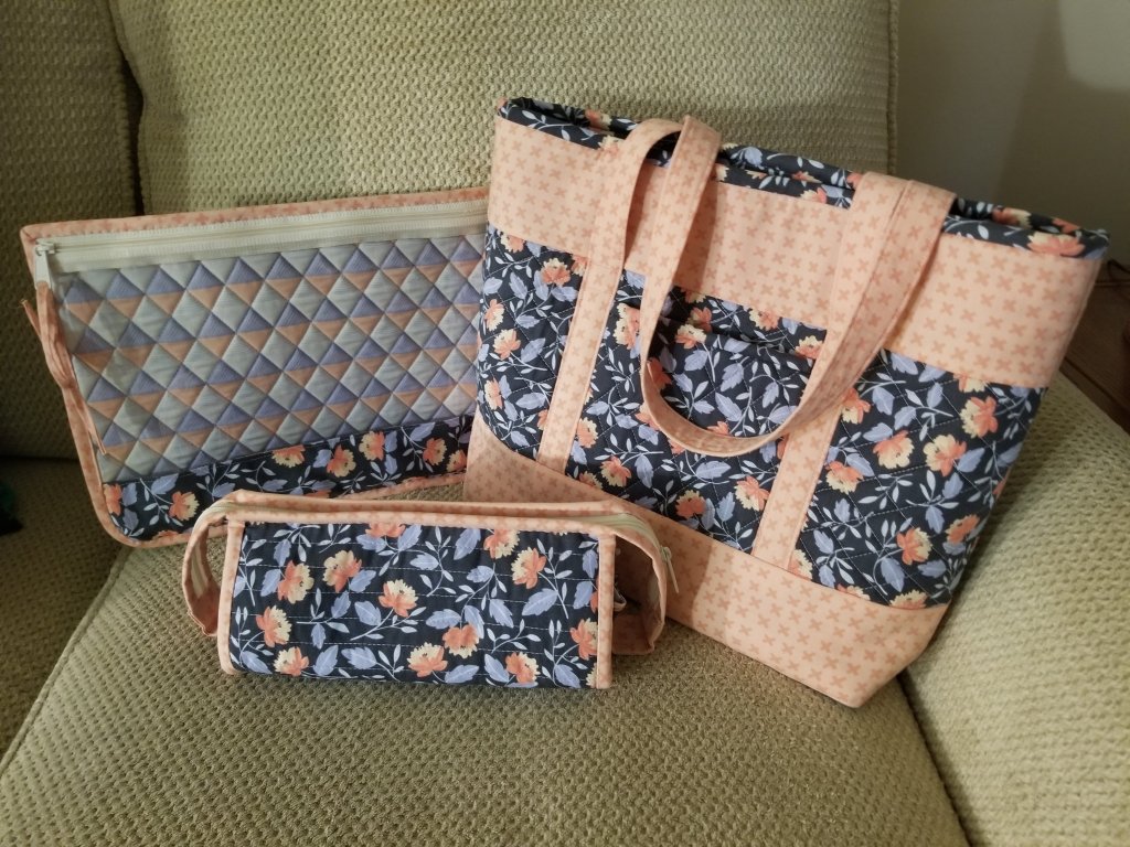 It was 2 years ago when I got a lovely project and matching thread bag from Linda who excels as a needlepointer and quilter! I do enjoy being a test recipient of new designs. This, “Sew Together Bag” has the same fabric making for quite a lovely set!