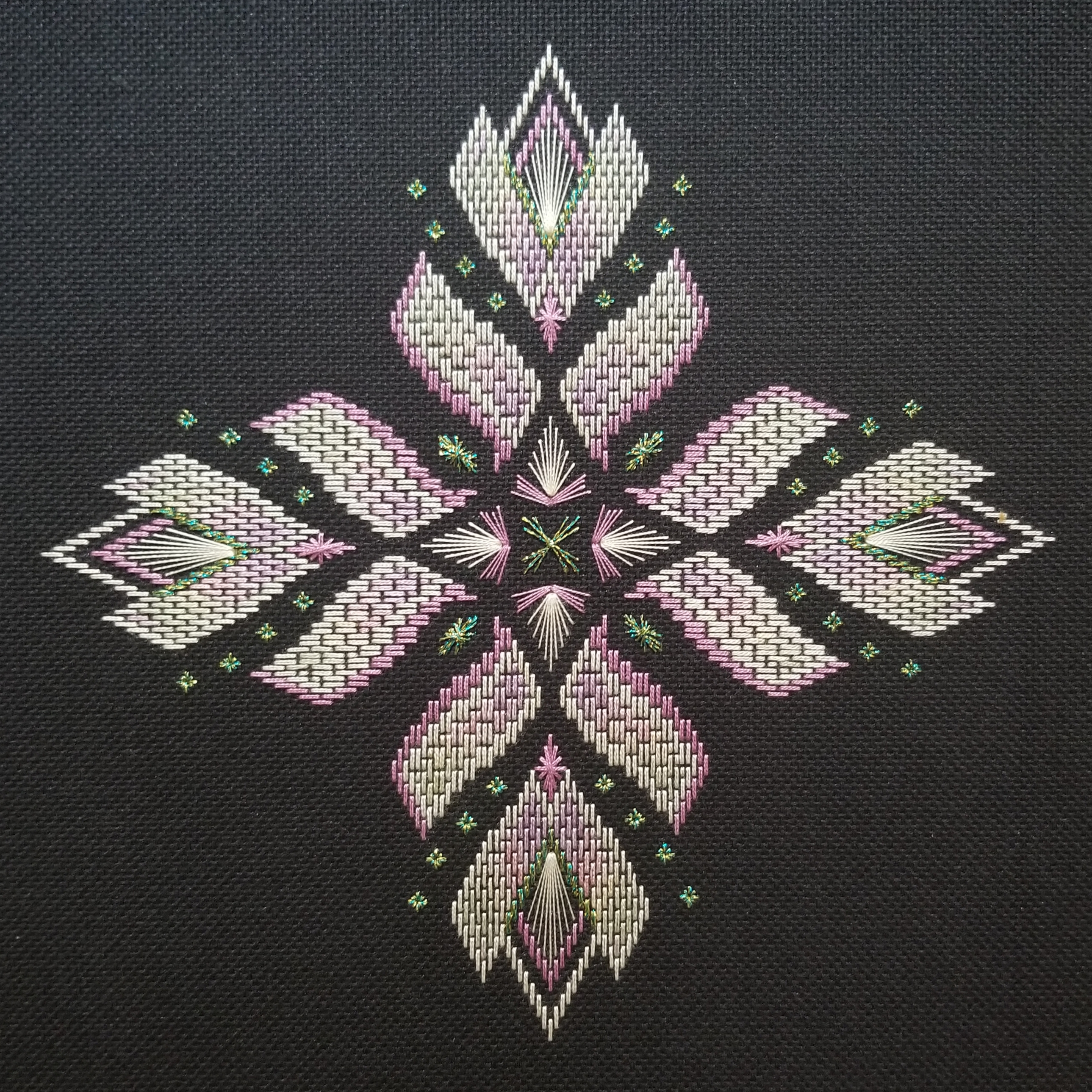 The last 2 counted projects were completed with the same thread line called Beautiful Stitches from Ann-Marie Anderson-Mayes in Australia. They were Orchid Lady by Mary Knapp (a Cyberpointers project from 2021) and my final finish of 2021 which is Starburst by Patricia Hartman (from the 2013 Chapter Project Book and was a Main Line Project years ago).