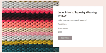 In this workshop, Bobbie says that students will learn the essentials of tapestry weaving by creating woven wall hangings using a frame loom. We will cover: • loom basics • fiber selection • weaving tools • warping a loom • stitches and knots • shapes and space • removing a weaving from the loom • various finishing techniques This workshop includes a 10-inch loom and everything you need to complete your tapestry (all yours to keep)! You are welcome to bring your own favorite yarns if you wish – I suggest bulky yarns (weight 5 or above) for beginners. Contact me (Bobbie) if you would like a larger loom for an upcharge: 14 inch +$10, 20 inch +30, 36 inch +$210.