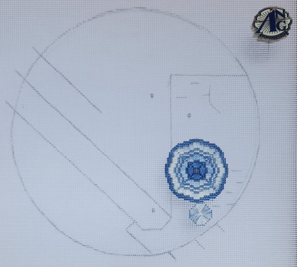 My ANG Main Line Stitchers chapter has started Circles by Lois Kershner, the ANG 2008 Stitch of the Month. It is one of 2 counted projects for the year. We have more members than ever (35 and 18-20 show up in person and on Zoom). So, we (the chapter Board) thought that a couple of projects would be needed to appeal to more members. We have 9 people working on Circles and 10 on the other piece which will be the subject of another post. And 5 people are working on both (yes, I am one of the 5). So, we have 14 people participating in ongoing projects which is quite good. We have a third ready to start in a few months.