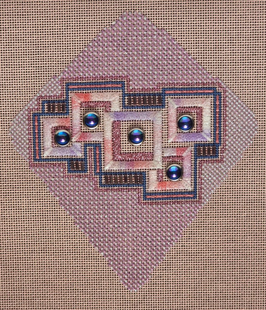 I worked on the background during a Zoom call, during football games, and a movie. It’s interesting to see Susan’s choice to do the denser tent stitches on the sides and skipping every other for the more open pattern on the top and bottom.