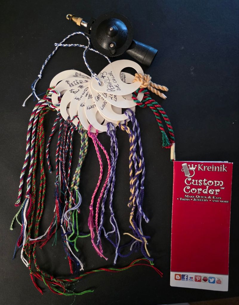 Prices of the Kreinik Custom Corder vary at different sites online so shop around. Or, you can put a pencil at one end and hand twist the pencil. You can also use a hand drill.