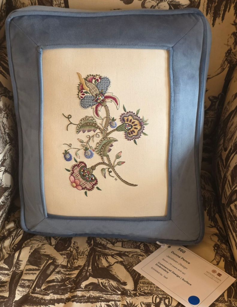 Surface Embroidery (560) Jacobean Design. Congratulations to Donna Pence for a Blue Ribbon.