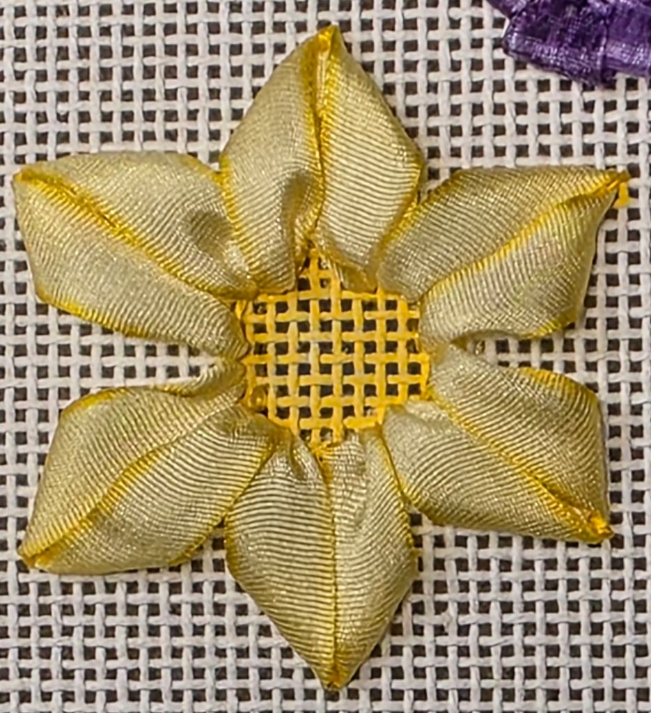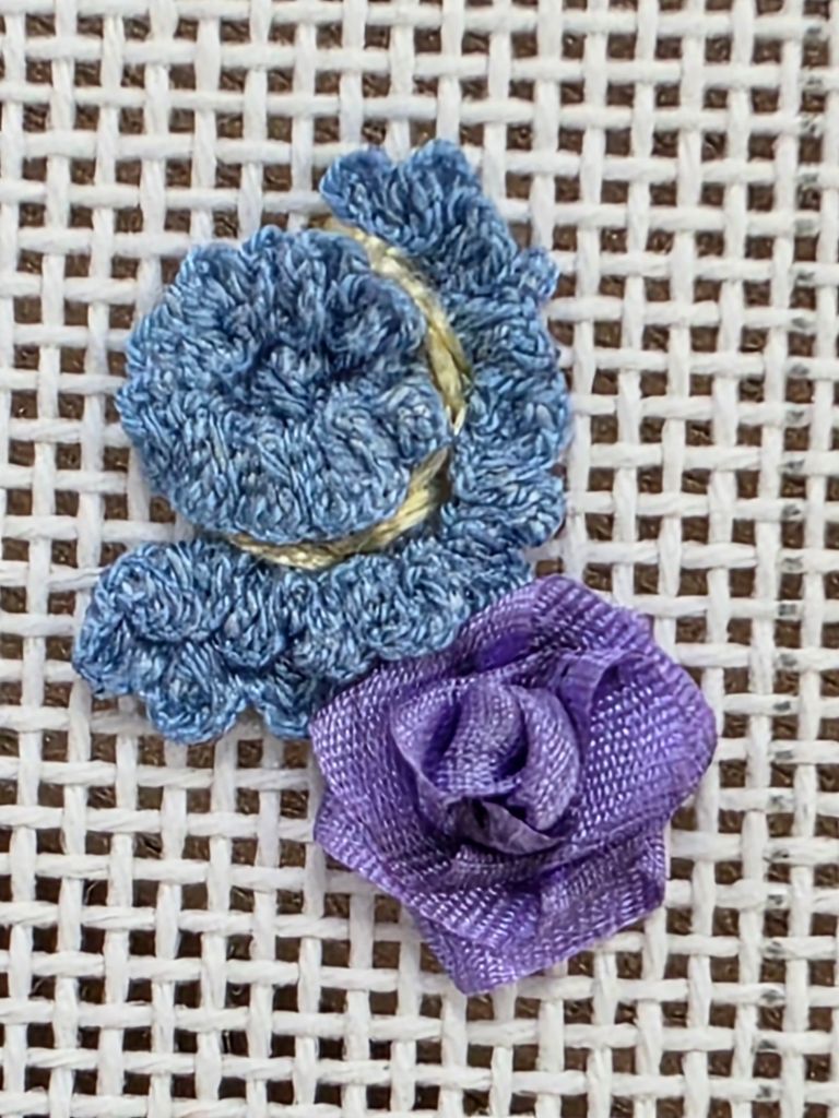 The French Knot Ribbon Rose is Lynn’s variation of the one Tamara teaches. One of the most beautiful, delicate roses I’ve ever seen!