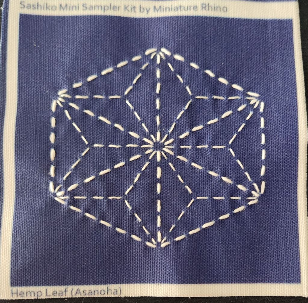 One of the items that I came across was this Sashiko Mini Sampler Kit by Miniature Rhino. It was in the welcome gift bag from the Central Jersey Chapter (CJC). It’s a recent addition to my stash, but it looked like it’d work up quickly once I get started and rather than find a place to store it, I decided to stitch it. There were no instructions. So, I watched a couple of YouTube videos on Sashiko. There are books too.