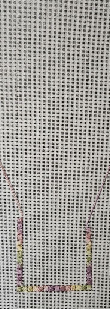 We’re using 3 strands for each Scotch stitch. So, I am creating a mirror image working up each side. Here’s my progress for the day.