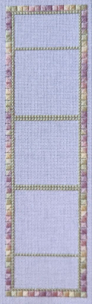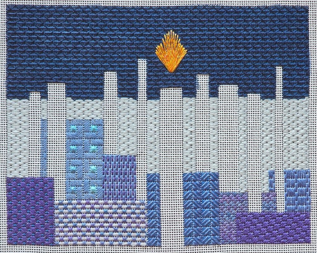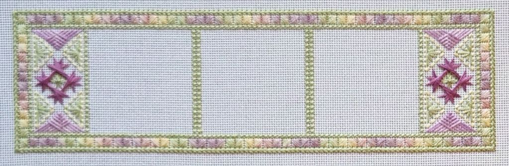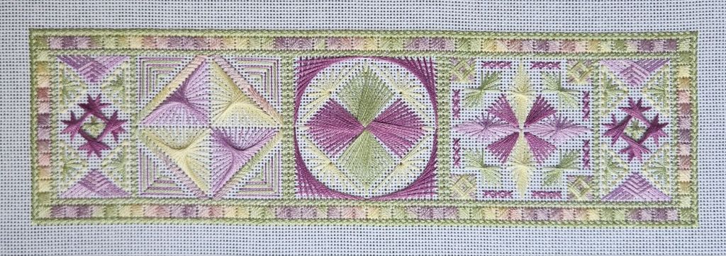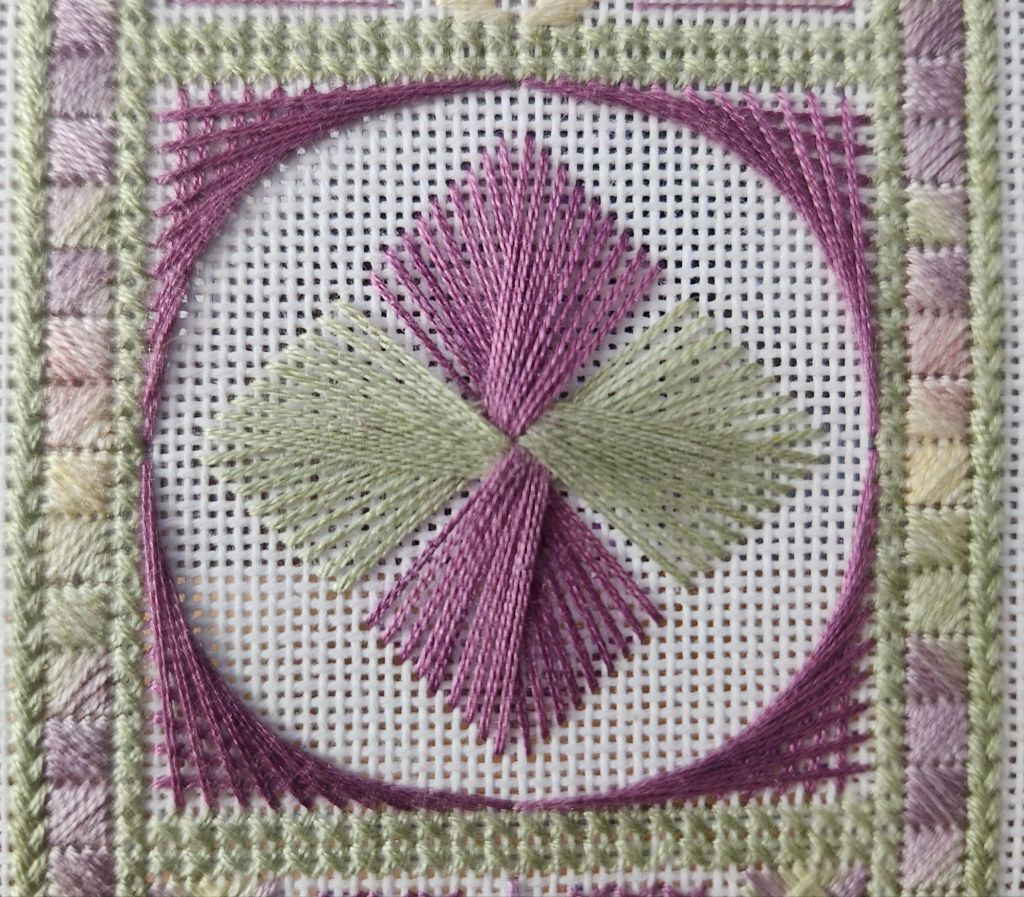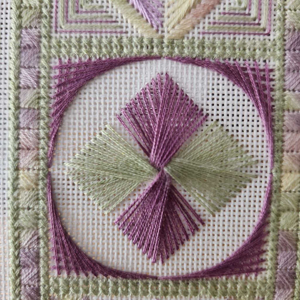 Later, during the ANG New Jersey Needle Artists Chapter monthly meeting, I started on the bottom square. The following day, after I got home while watching the Phillies, I finished the bottom square.