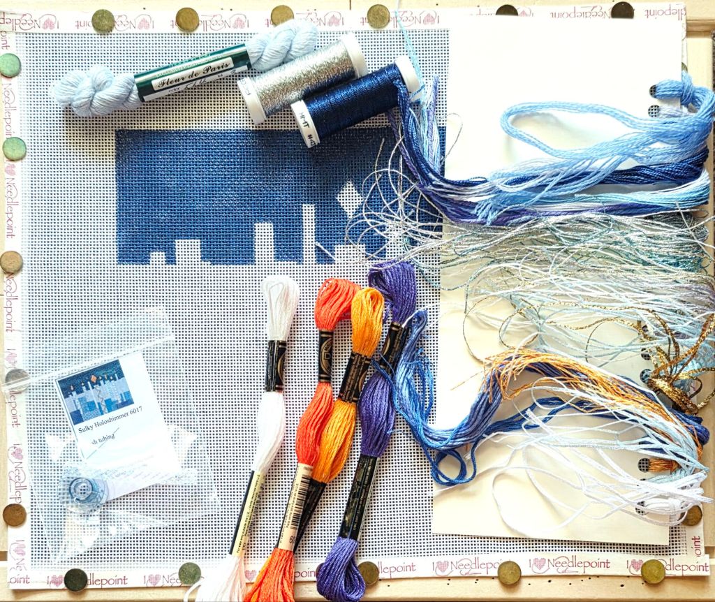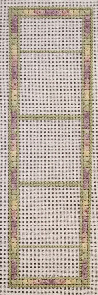 The ANG Streetcar Chapter had at table at Expo this summer and I picked up this little ornament. It’s marked CB6 (maybe CBK Needlepoint Collections). I have to work ‘in the well’ because the canvas measures 4.5″x5″. I could lace it to larger size bars but this should be fine.