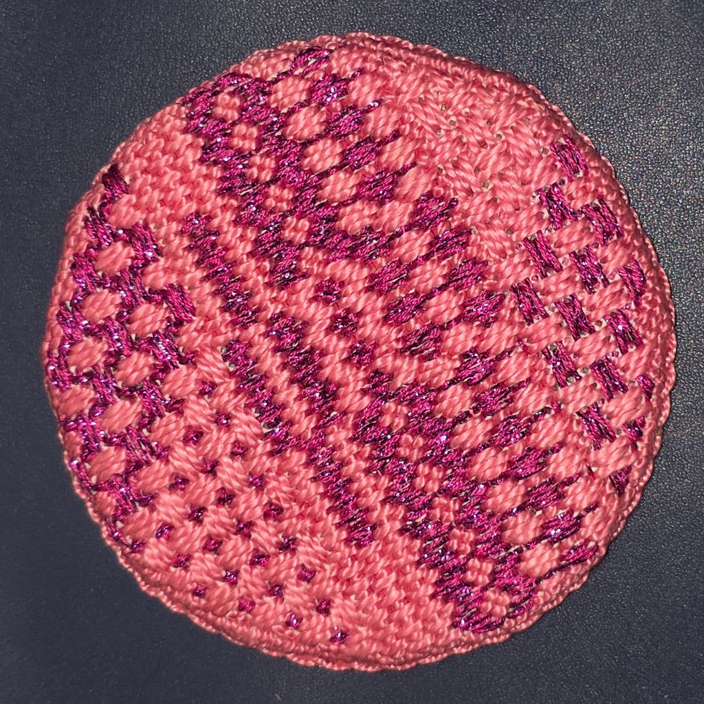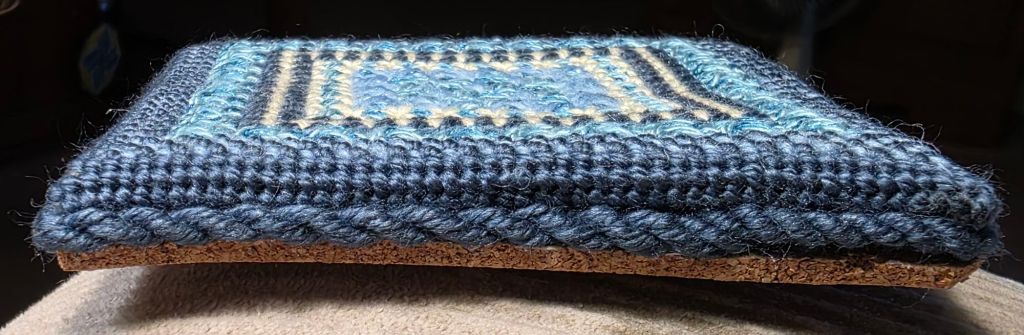 As I told them, I almost never do finishing the same way twice. I demonstrated a round using my pink coaster (https://melitastitches4fun.com/2024/07/14/2024-summer-stitch-camp/).