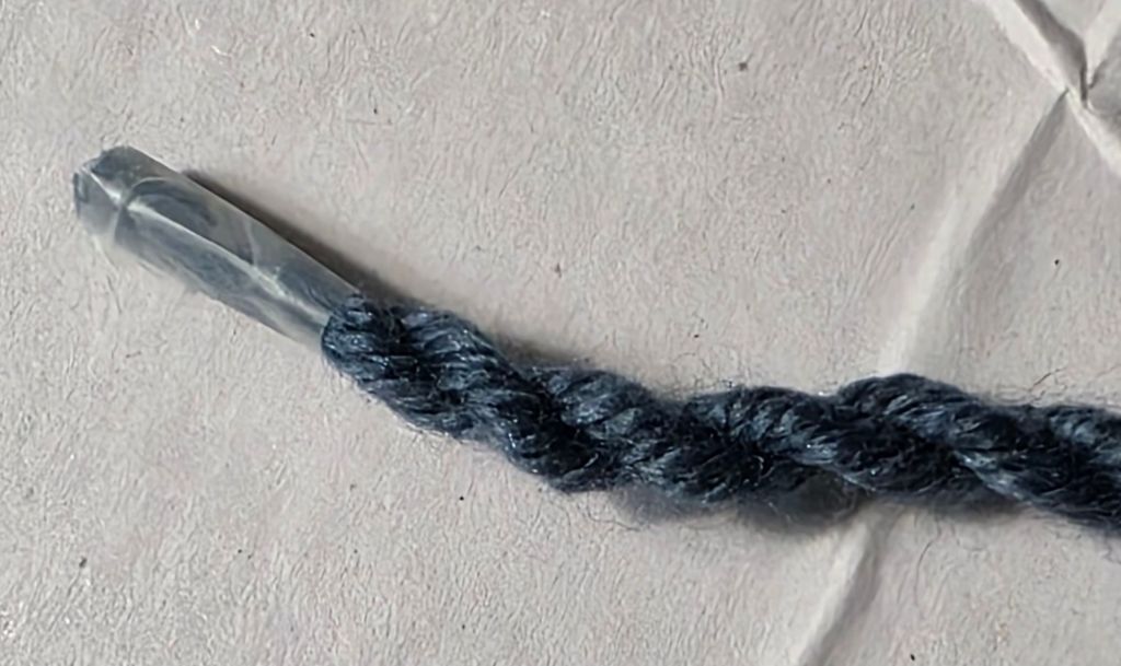 That’s when I remembered one way I avoid a knot on the cording which would create an unwanted bump which isn’t good for a coaster that needs to be flat. I put a piece of Scotch tape on the end with the knot and cut through the tape. It worked great on my thicker blue cord.
