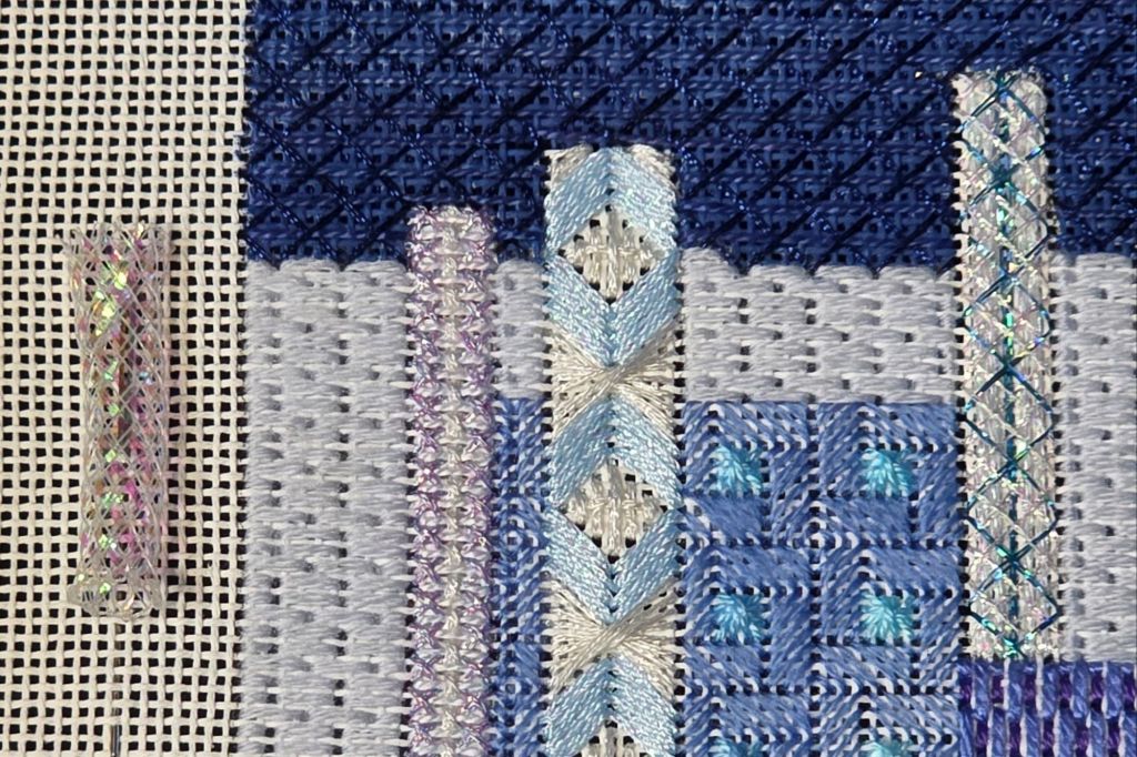 The ANG Central Jersey Chapter (CJC) meet and stitch on the 3rd Saturday of every month (from 10 am – 3 pm). Since I last joined them at the November 2024 meeting, I have picked up Summer Fireworks by Ann-Marie Anderson-Mayes occasionally when a small, easier piece was what I wanted to do.