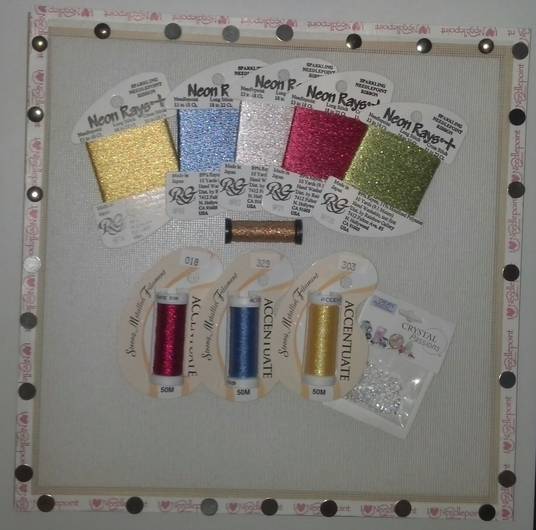 Part of the fun with ordering threads from Ann-Marie Anderson-Mayes in Australia was to see what solid colors she would pick to go with the overdyed thread we selected. Even though I am not stitching Celestial Twist with the others at ANG Main Line Stitchers, these threads will work for 2 projects on my To Do List which are Starburst by Patricia Hartman and Orchid Lady by Mary Knapp which will be done on black Congress Cloth. Hopefully, I have enough for both projects. They will look nice together.