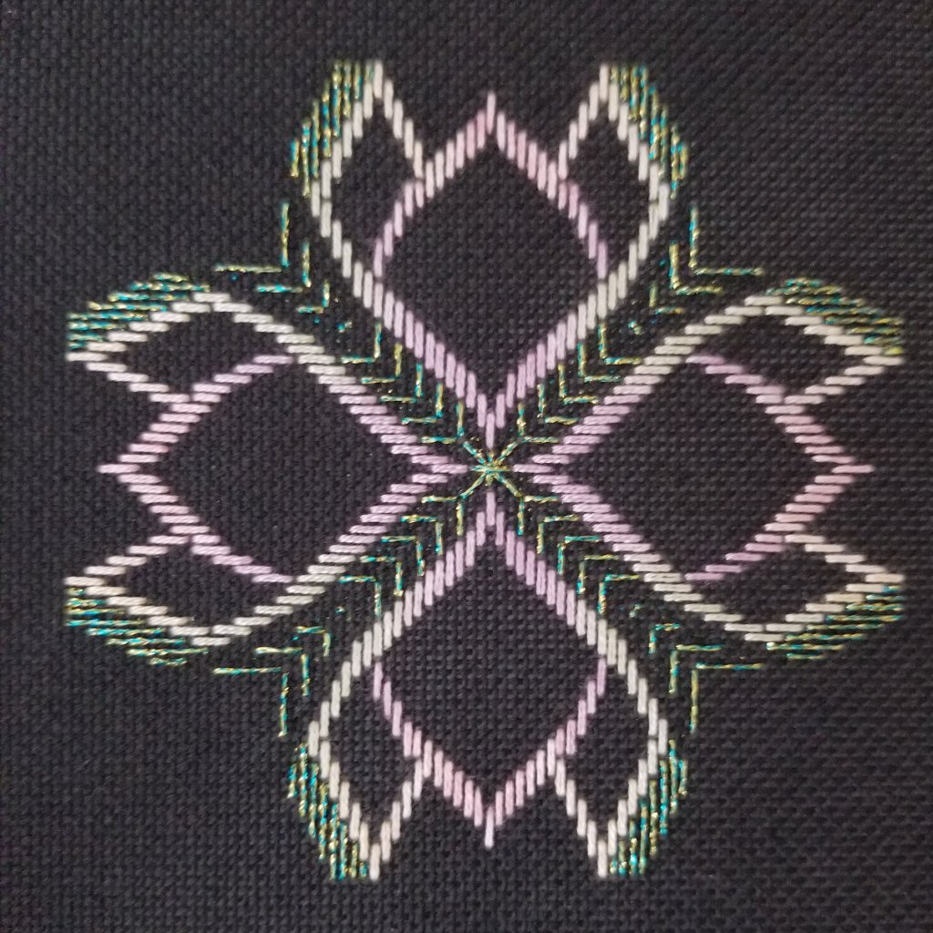 Before I can start though, I need to finish one in progress piece. But, I can start to plan which threads will go where in Starburst. That’s the larger of the two pieces and the one I have wanted to do longer than Orchid Lady.