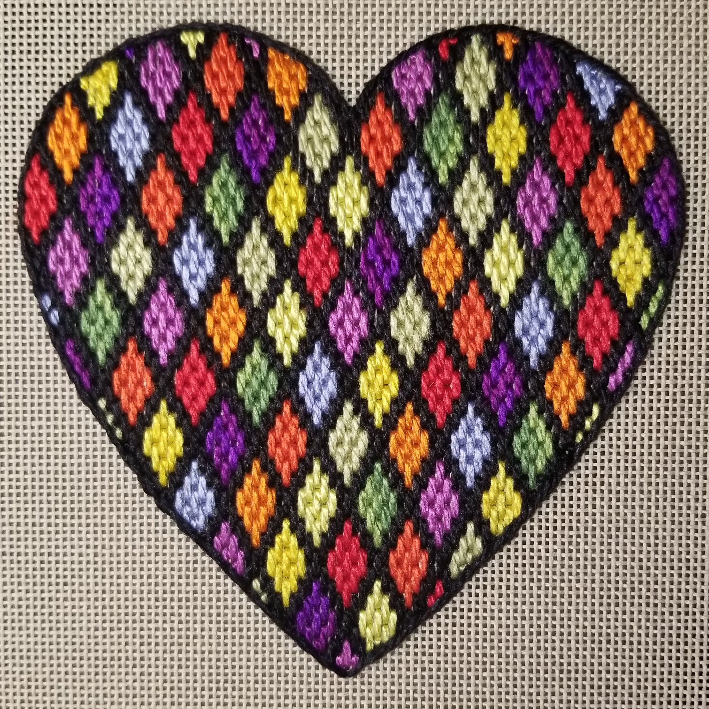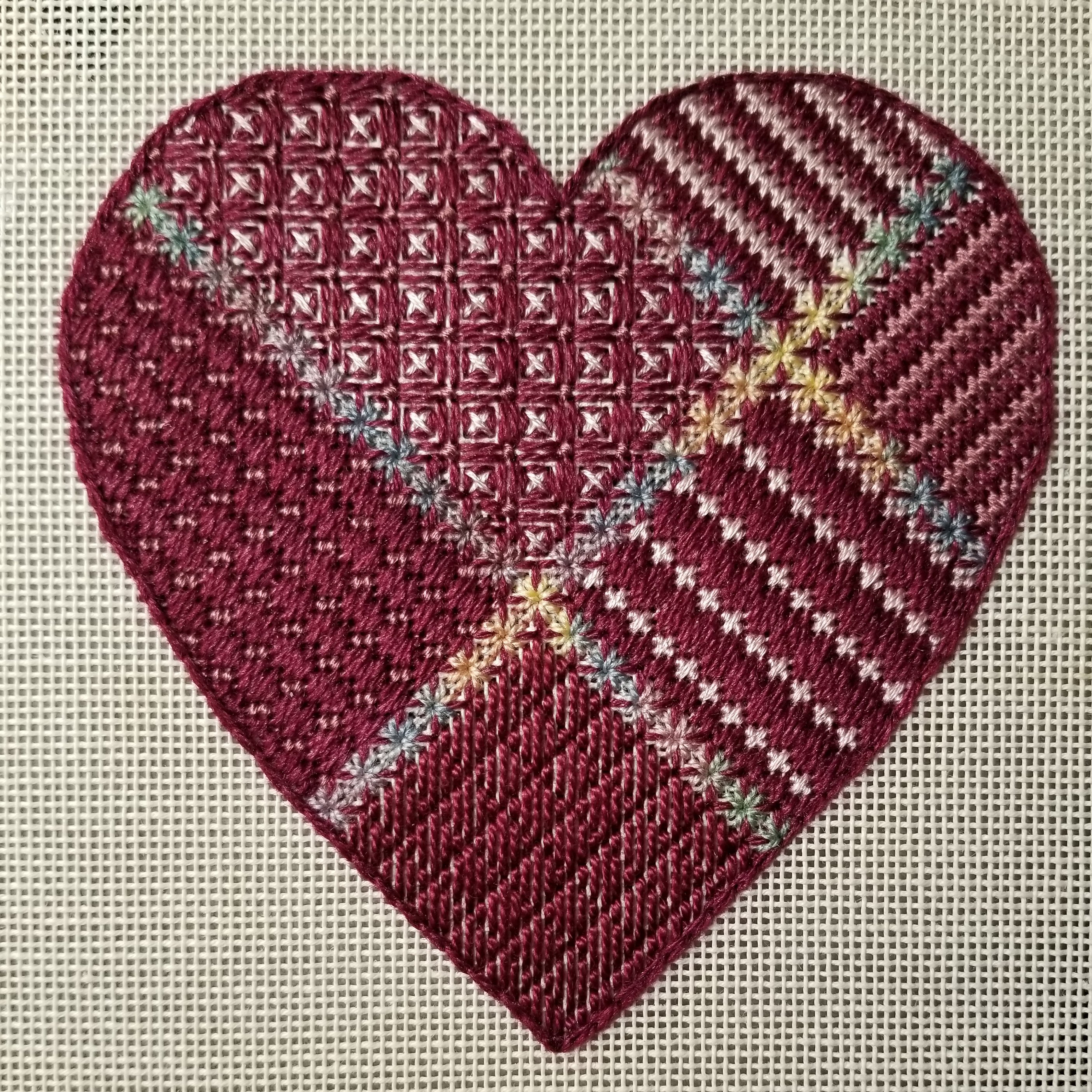 The Enriched Stitch, a needlepoint store in Wilton, CT has provided a free stitch guide for this heart at http://astheneedleturns.com/rhodes-heart-stitch-along-with-suzie/ which you can do with any variety of colors and threads.