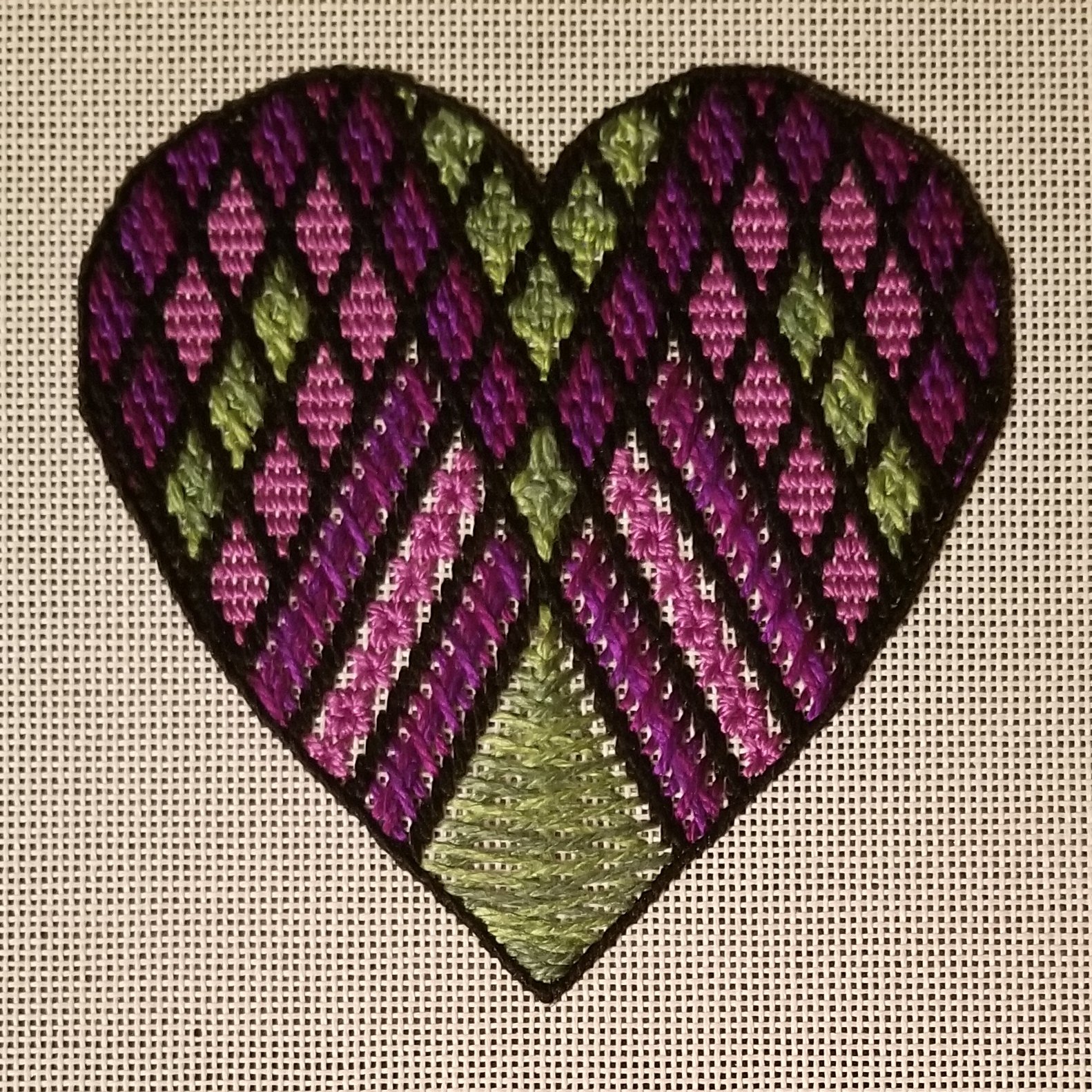 I got the idea for this heart from Nan’s Afghan Scrap Bag Needlepoint on Nuts about Needlepoint’s blog.
