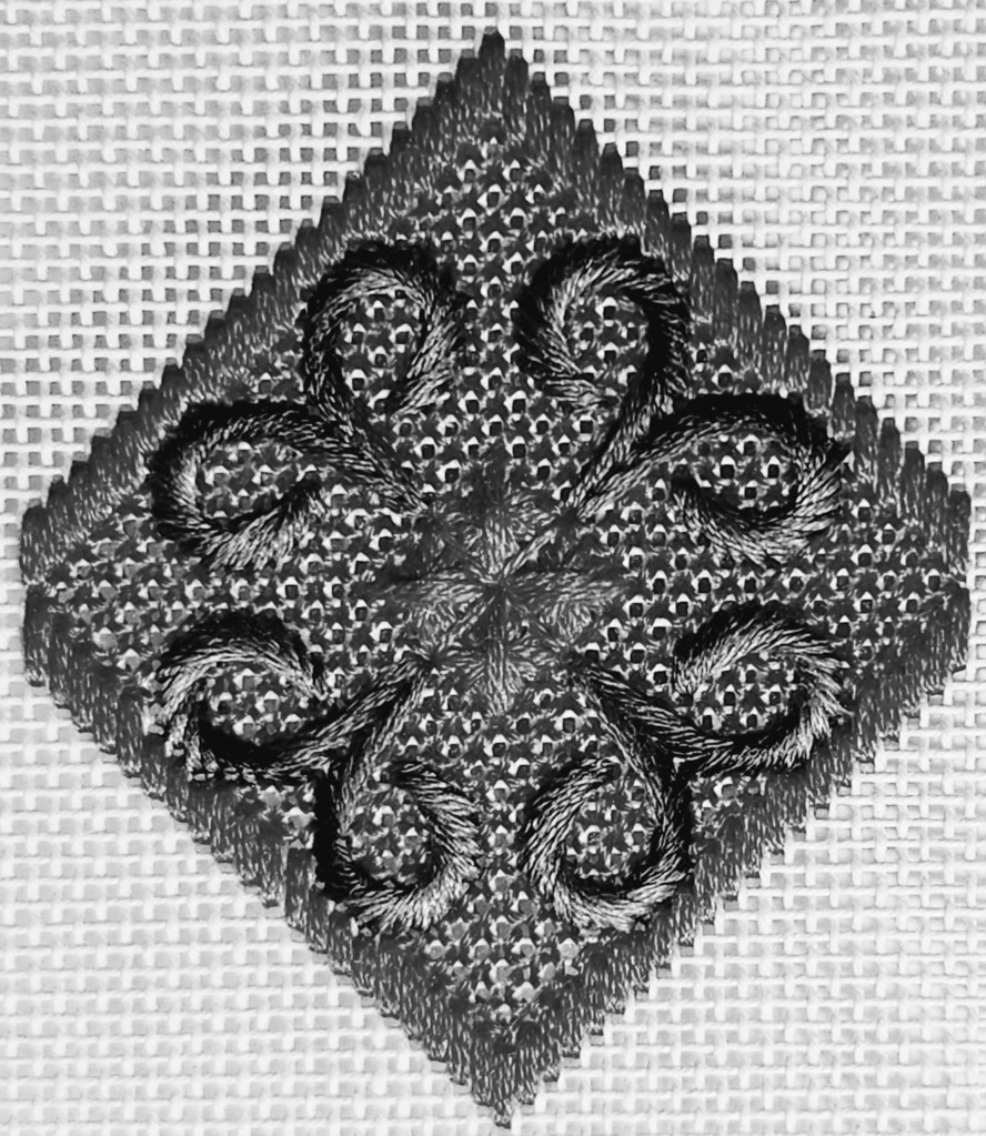 I finished the border Monday but got sidetracked and forgot to post this. I’m very happy with how this turned out. Thanks again to Linda for leading us through the project and picking threads which is key to getting the motifs to show.
