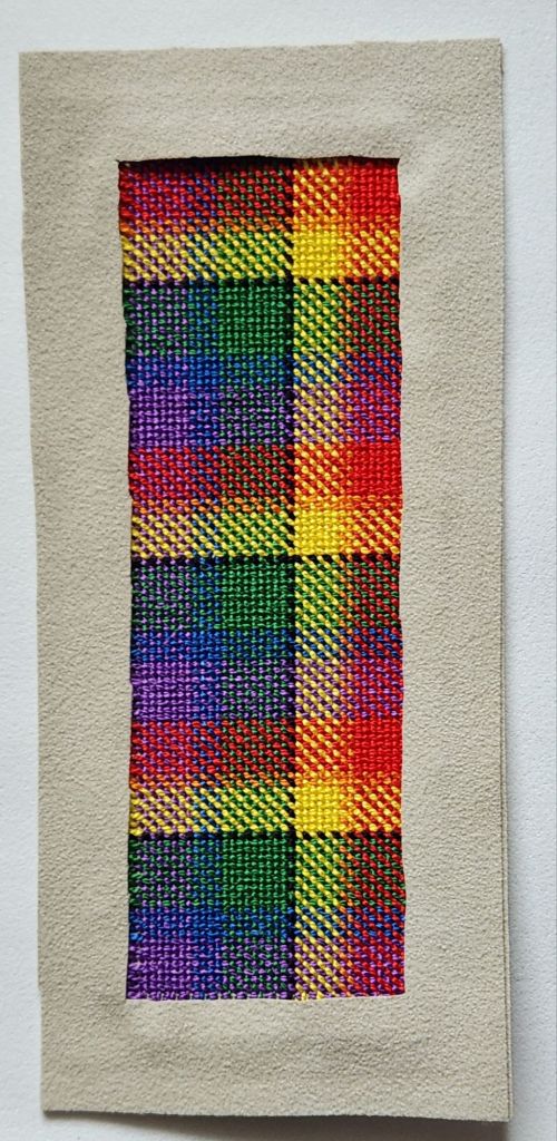 The New Jersey Needle Artists (NJNA) chapter decided to do a birthday plaid. They handed out a template to make a name tag. But, I want to try and make it reversible. So, I will be making it into a bookmark. If it works out, I’ll do one for Bill too.