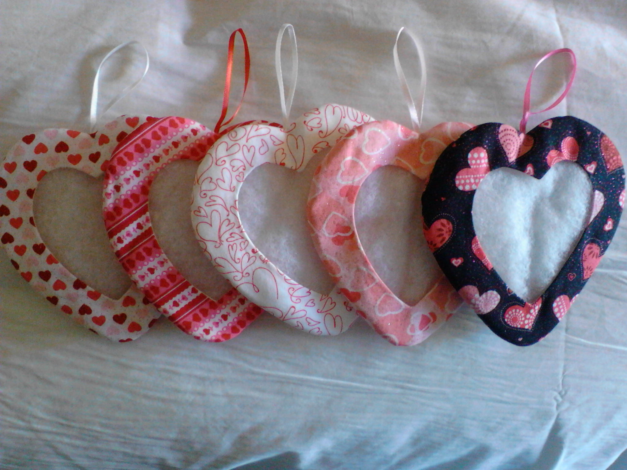 When I was at Designers Desk in Geneva, IL at seminar, I picked up extra cloth ornaments as Christmas gifts for Board members of my ANG Main Line chapter. These were all the various heart patterns that they had for sale. I couldn’t share them until after our Christmas dinner meeting.