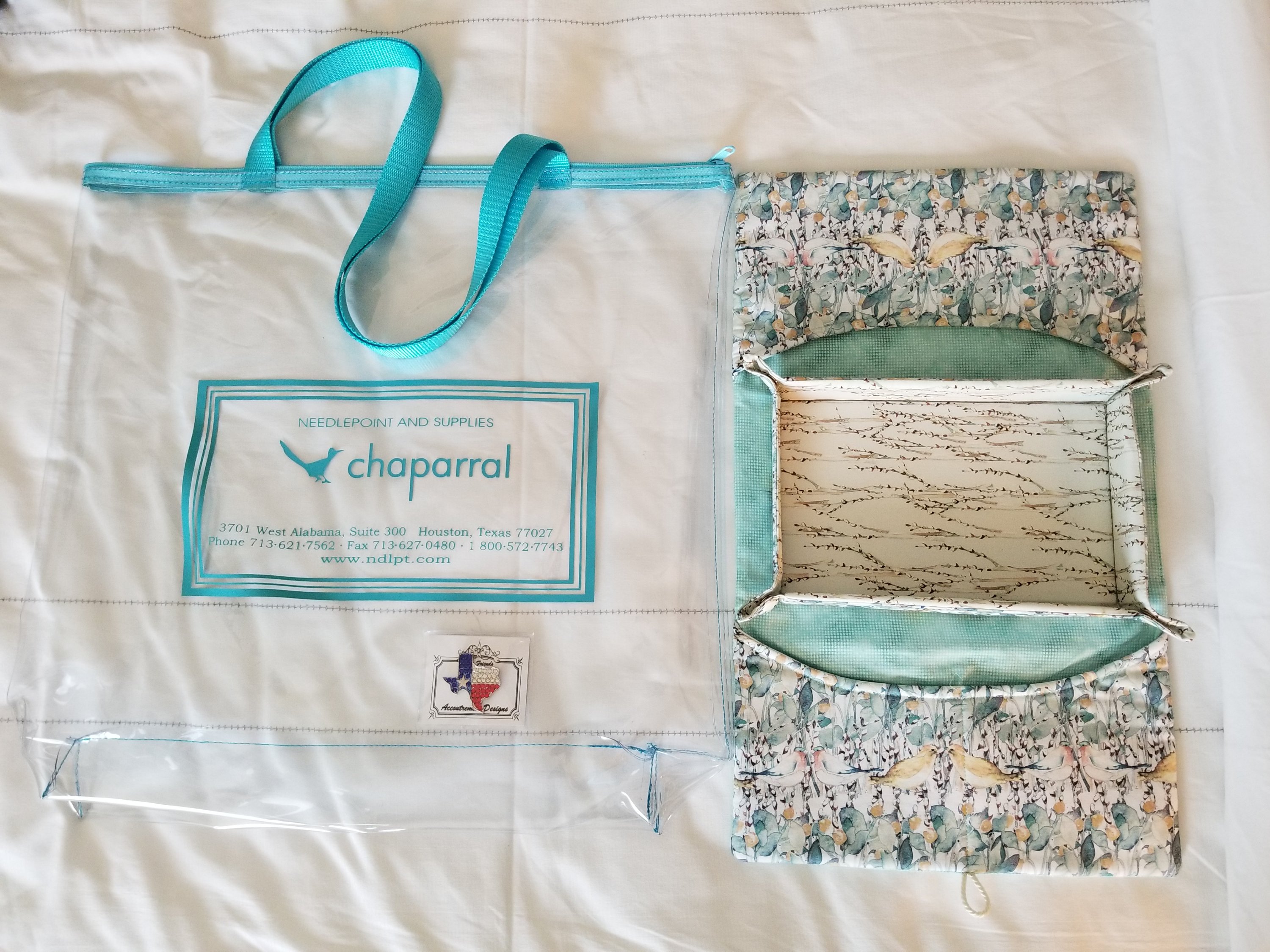 Chaparral had a U design within a square shaped area. Canvases everywhere, plenty of threads, and various supplies. I knew I needed a project bag for A Toast to Tiffany and found one there.